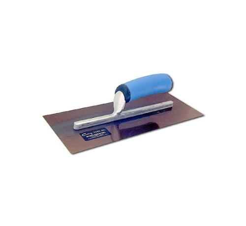 We have tested and improved this trowel for years. The blade is of a special precipitation, hardened light-weight, stainless alloy, that has all the quality features of our high carbon steel used in the reqular trowel but will not rust, pit or stain and will hold its shape. This is a truly fine tool. Available in Straight, California, or soft-grip handle, in an assortment of sizes.