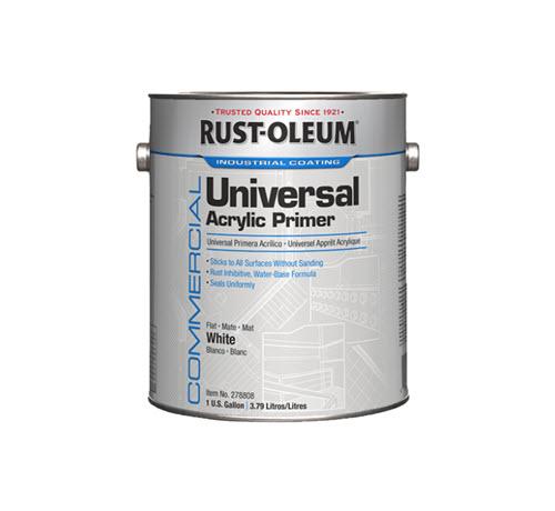 Rust-Oleum's Universal Acrylic Primer is specifically formulated for application to a variety of surfaces that include metal, wood, concrete, plaster, wallboard, hardboard, glass, and tile. The rust inhibitive formulation also makes it an ideal choice for direct application to steel. The primer is also an excellent stain blocker and resists growth of mold and mildew.