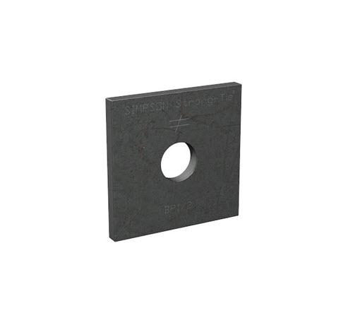 The BP is designed to provide a greater bearing surface than standard cut-washers and help distribute the load at critical connections. This bearing plate works by transferring concentrated compressive forces between two structural elements. The BP is available with a hot-dip galvanized (HDG) coating to protect the plate from corrosion when exposed to the elements or certain types of treated lumber.